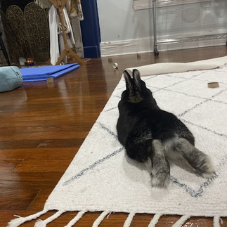 Regardless, I introduced chimkins to my homestead and now have two bunnies as composting machines. When my daughter came to visit, I had a tent full of birds in the bunny room, the living room was glowing like an extraterrestrial vessel from all the grow lights, a rescue pup I was fostering was destroying everything in sight while my senior dog hid in the bathroom, and a feral kitten I brought home was doing Jimmy "Superfly" Snooka leaps from the couch to my jugular. I had to attach a pencil to the tiny kitten with a soft hair scrunchie so she didn't squeeze through the bun gate and chase the buns around.